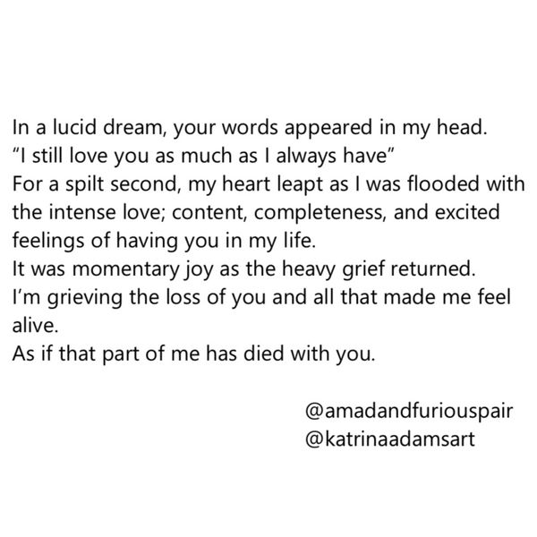 Loss of the main witness to the most intimate part of my life is physically, and emotionally devastating. While there is no cure for how I am feeling, in bringing my love and grief to the surface in the form of art, I am determined to turn this tragic moment into something positive, for me, Tim, for others who grieve, for the wider artistic community and audiences.